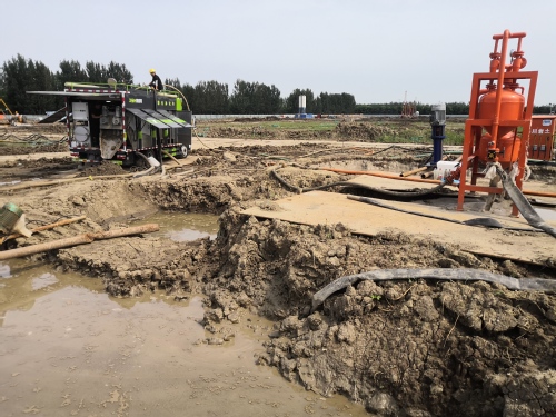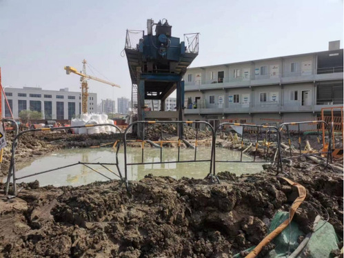 该项目为老旧院区刷新项目,施工现场极为狭窄,泥浆运输车无法通行,思量到牢靠式板框压滤机的装备较大、组装周期长且倒运于转场等因素,接纳了车载一体式板框压滤机处置惩罚修建泥浆,取得了优异的应用效果。
