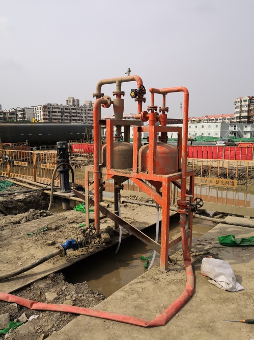 二是与中科院力学研究所相助,研发了一种适用于修建泥浆固体颗粒粒径疏散的双锥型水力旋流器,并在此基础上形成了基于多级旋流的前置除砂浓缩装备。通过该装备可将修建泥浆疏散为砂粉粒为主的湿泥砂和粘土浆水,疏散后的粘土浆水体积占比仅为原泥浆的65%左右。